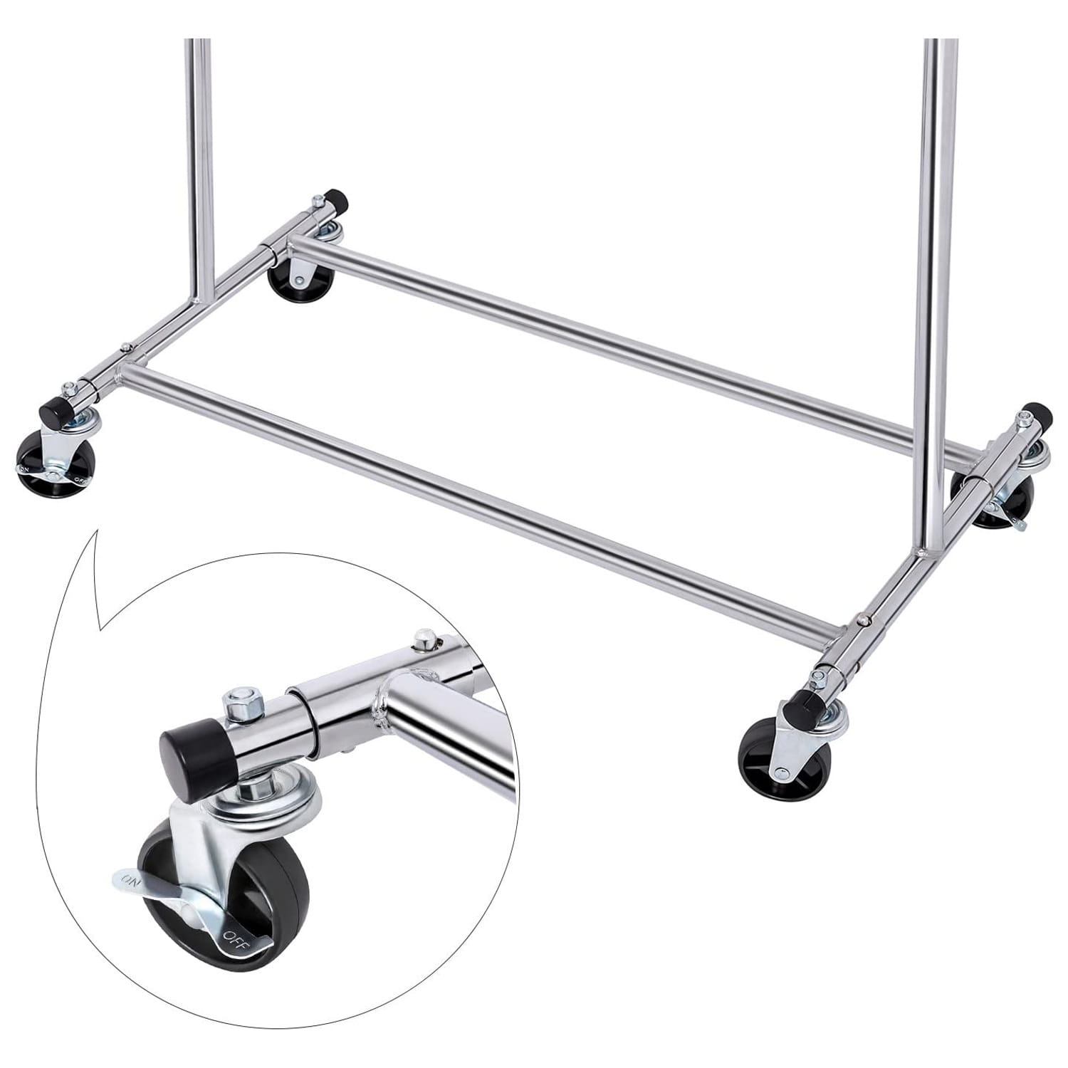 Wieszak posiada kółka, co czyni go niezwykle mobilnym. Dwa kółka posiadają możliwość ich blokady. Duże i dobrze skrętne kółka sprawiają, że wieszak z łatwością możemy przemieścić w wybrane przez nas pomieszczenie. Chcesz przymierzyć sukienki przed randką czy ważnym spotkaniem biznesowym? Nic bardziej prostszego, po prostu przysuń wieszak do lustra i możesz przymierzyć to na co masz ochotę.