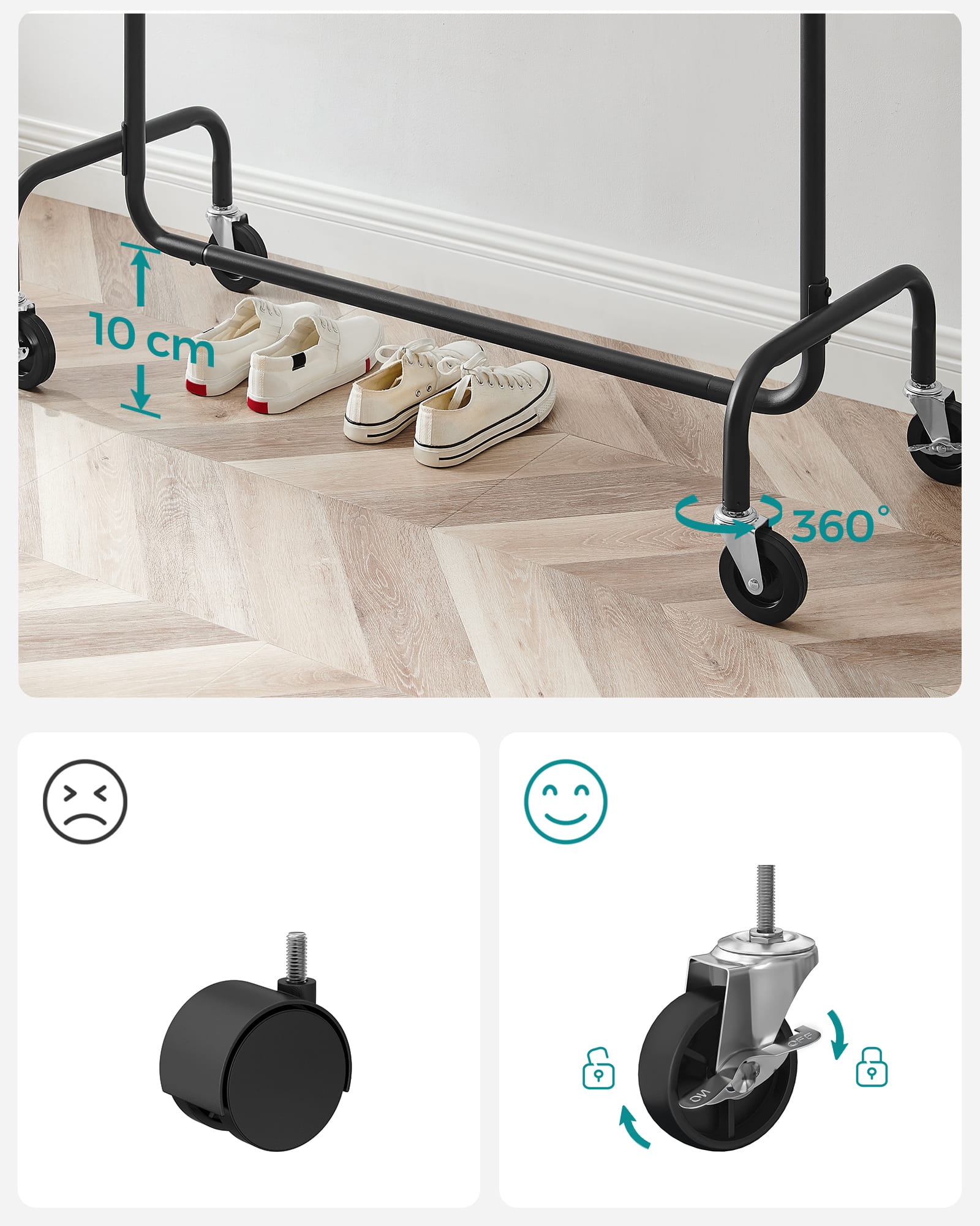 Wieszak na Ubrania na Kółkach czarny, wolnostojący