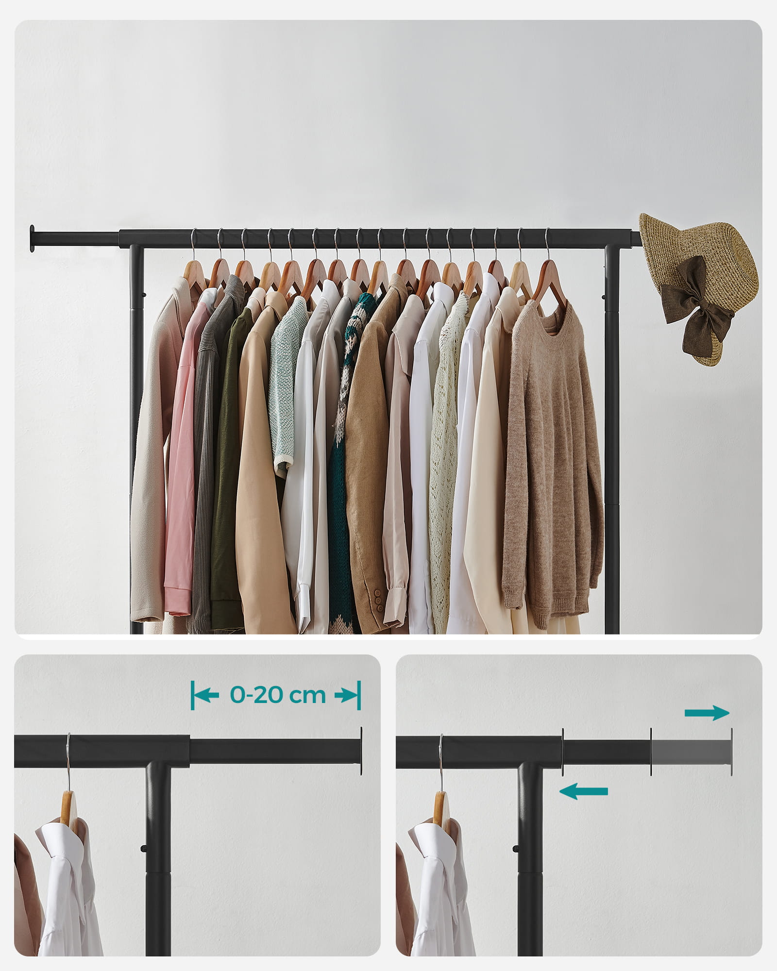 Możliwość wysunięcia drążka o 20 cm z każdej strony daje nam dodatkową powierzchnie na wieszane ubrania.