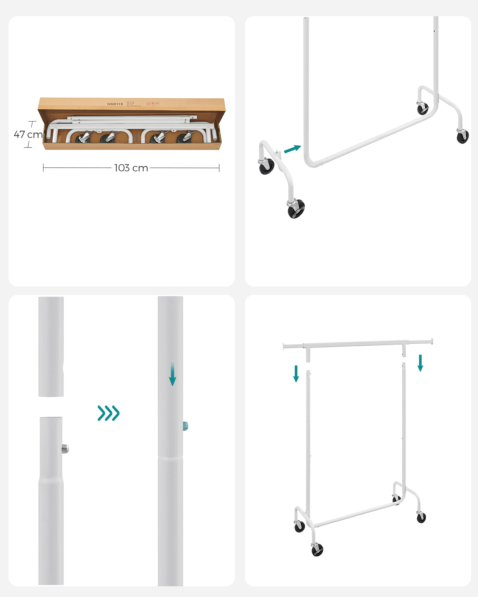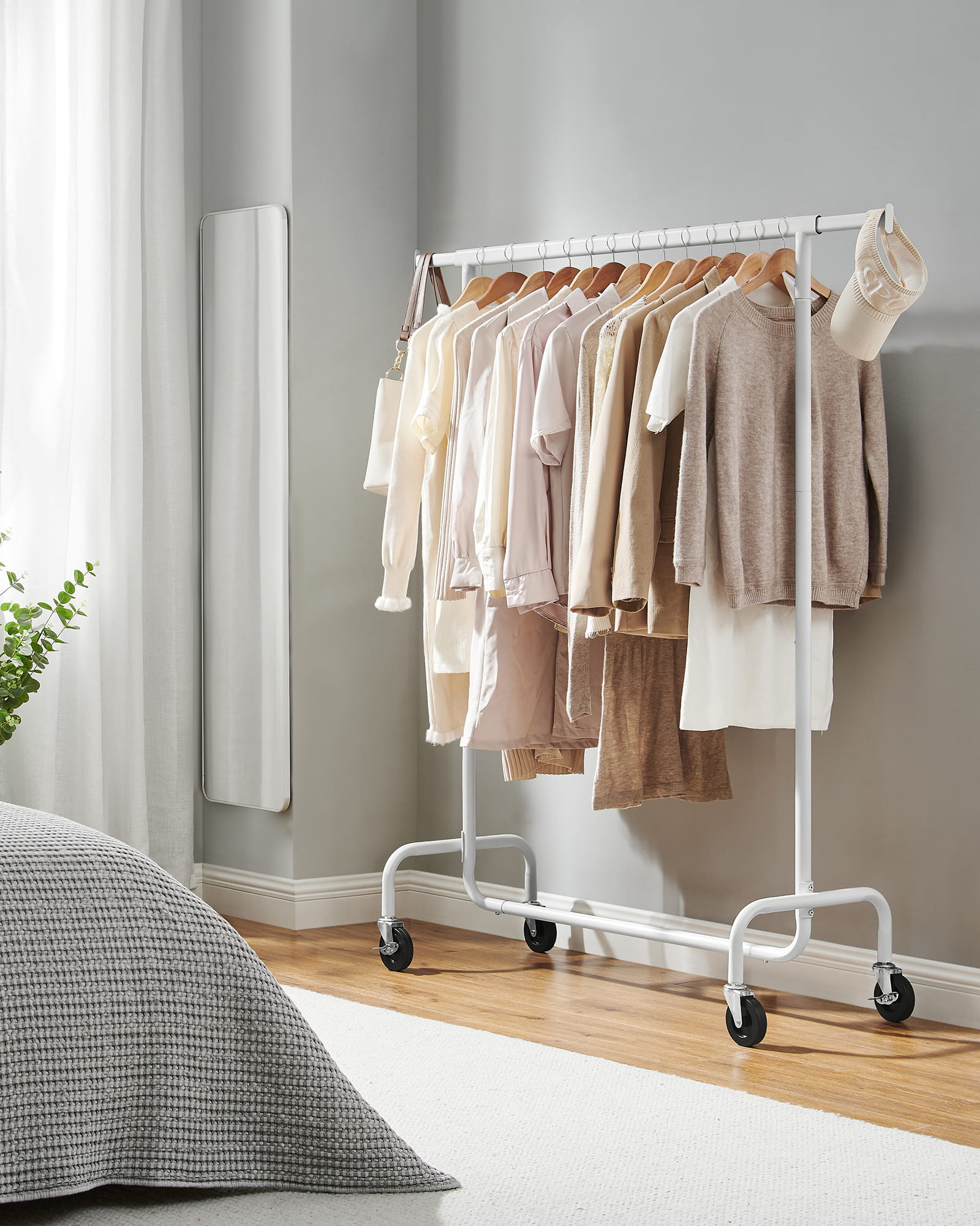 Wieszak na Ubrania na Kółkach wolnostojący, biały