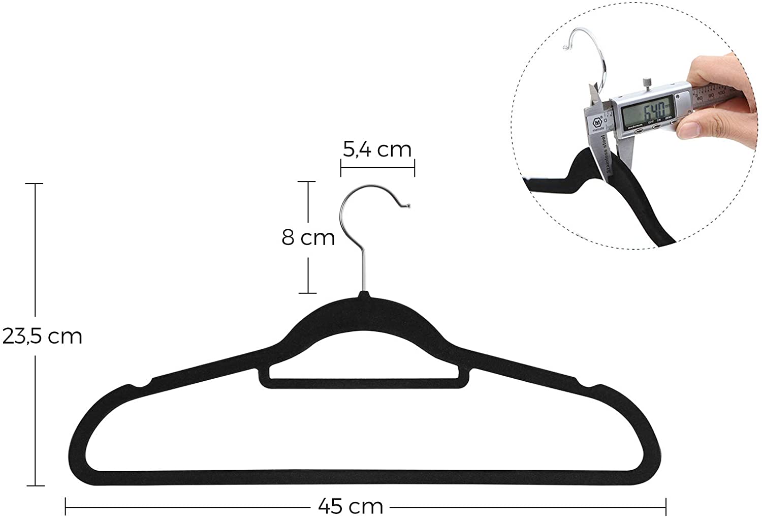 - Wymiary pojedynczego wieszaka: 45 x 0,6 x 23,5 cm (szerokość x głębokość x wysokość)