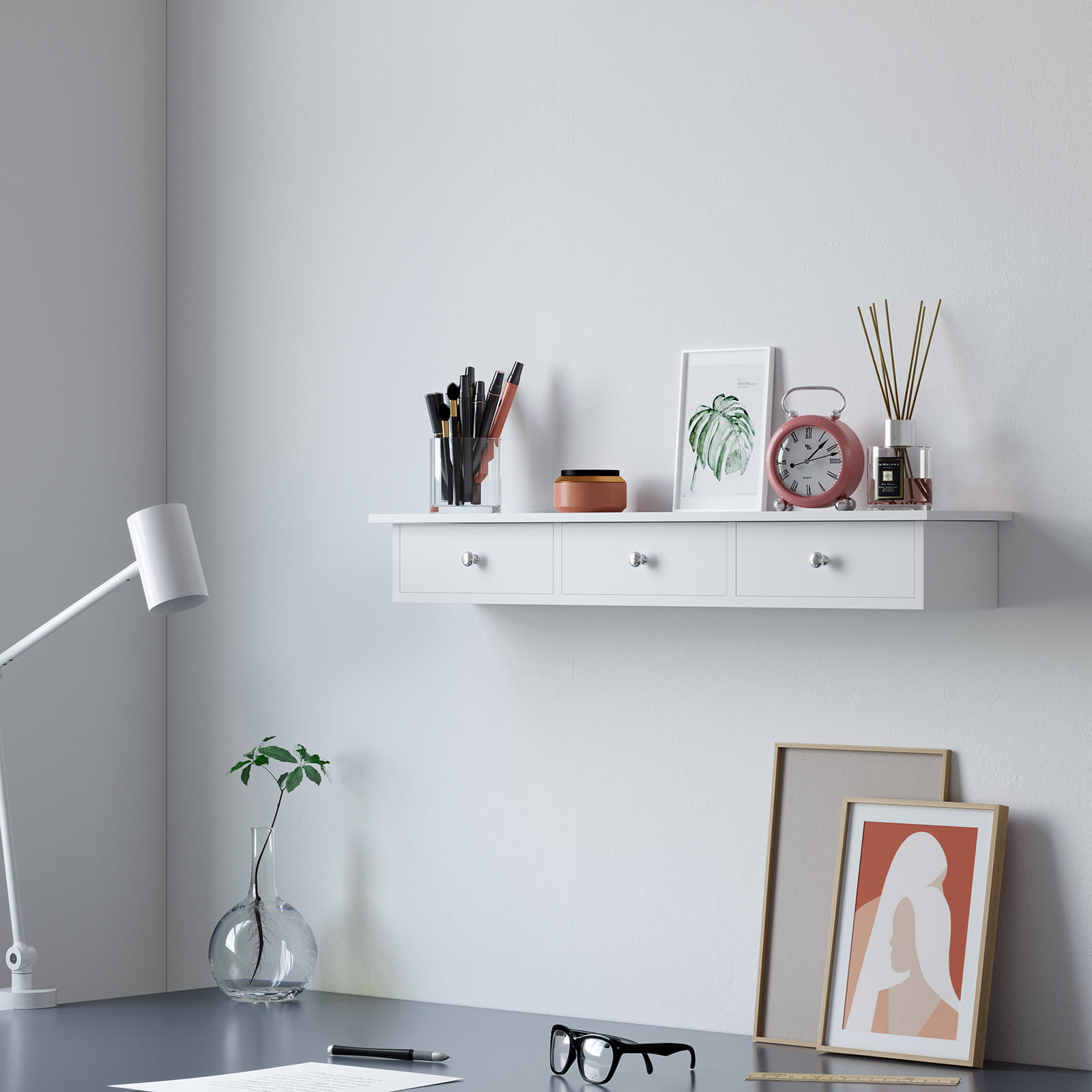 PÓŁKA ŚCIENNA Z SZUFLADAMI, BIAŁA