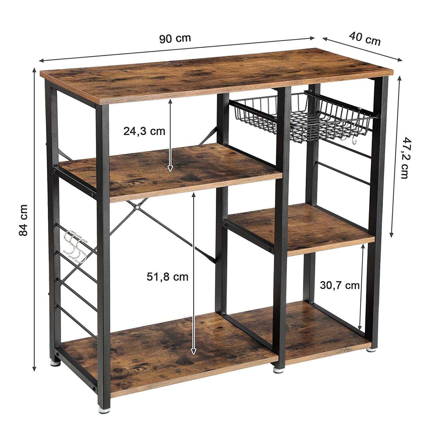 Wyspa wykonana w stylu rustykalnym, czyli odpowiednio stylizowanym na wiekowy. Półki wyspy są stabilne, a więc możemy umieścić na nich urządzenia elektryczne jak kuchenka mikrofalowa, ekspres do kawy, naczynia, produkty spożywcze, przyprawy i wiele innych.
