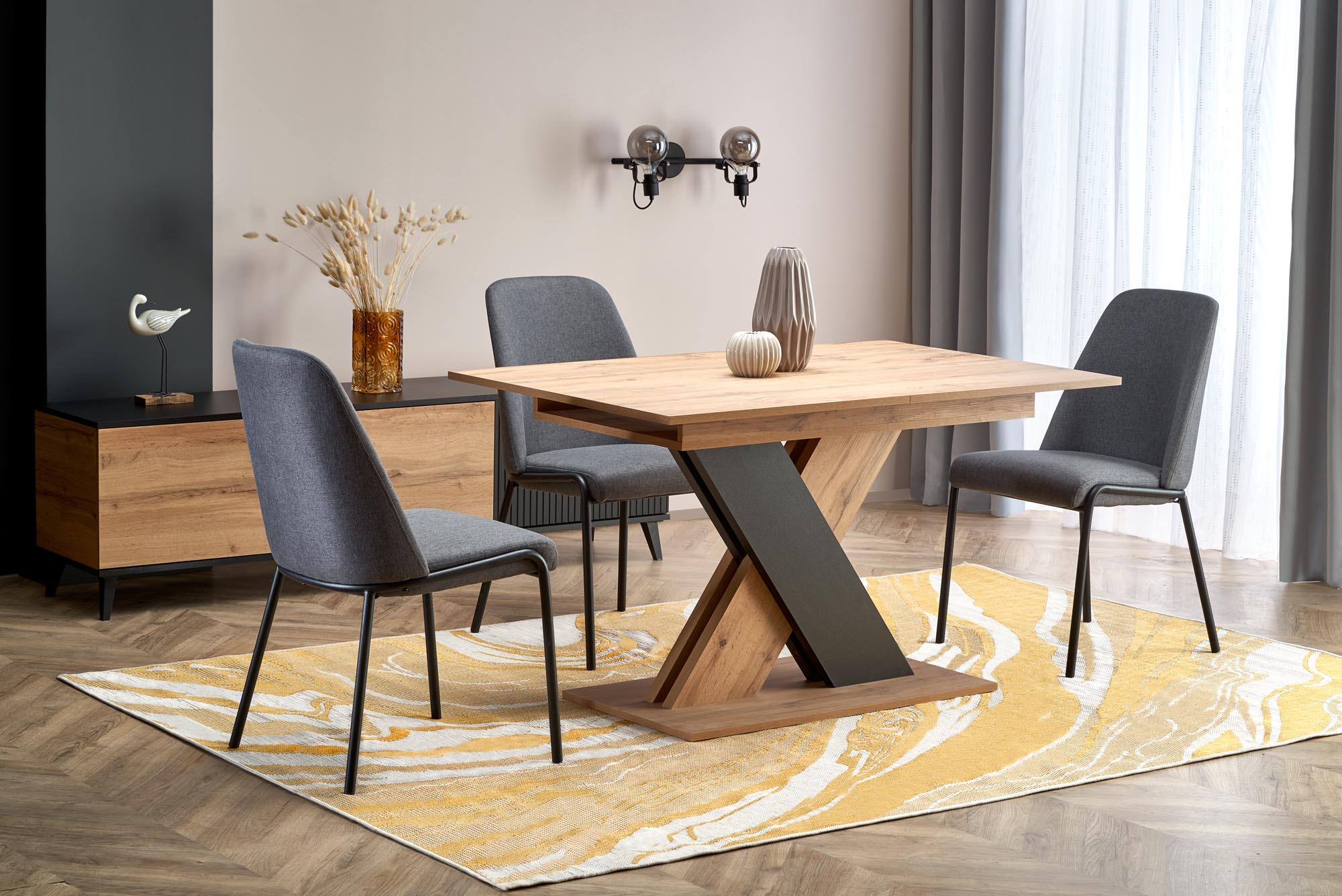 XARELTO stół rozkładany dąb wotan - czarny, noga X, nowoczesny, loft