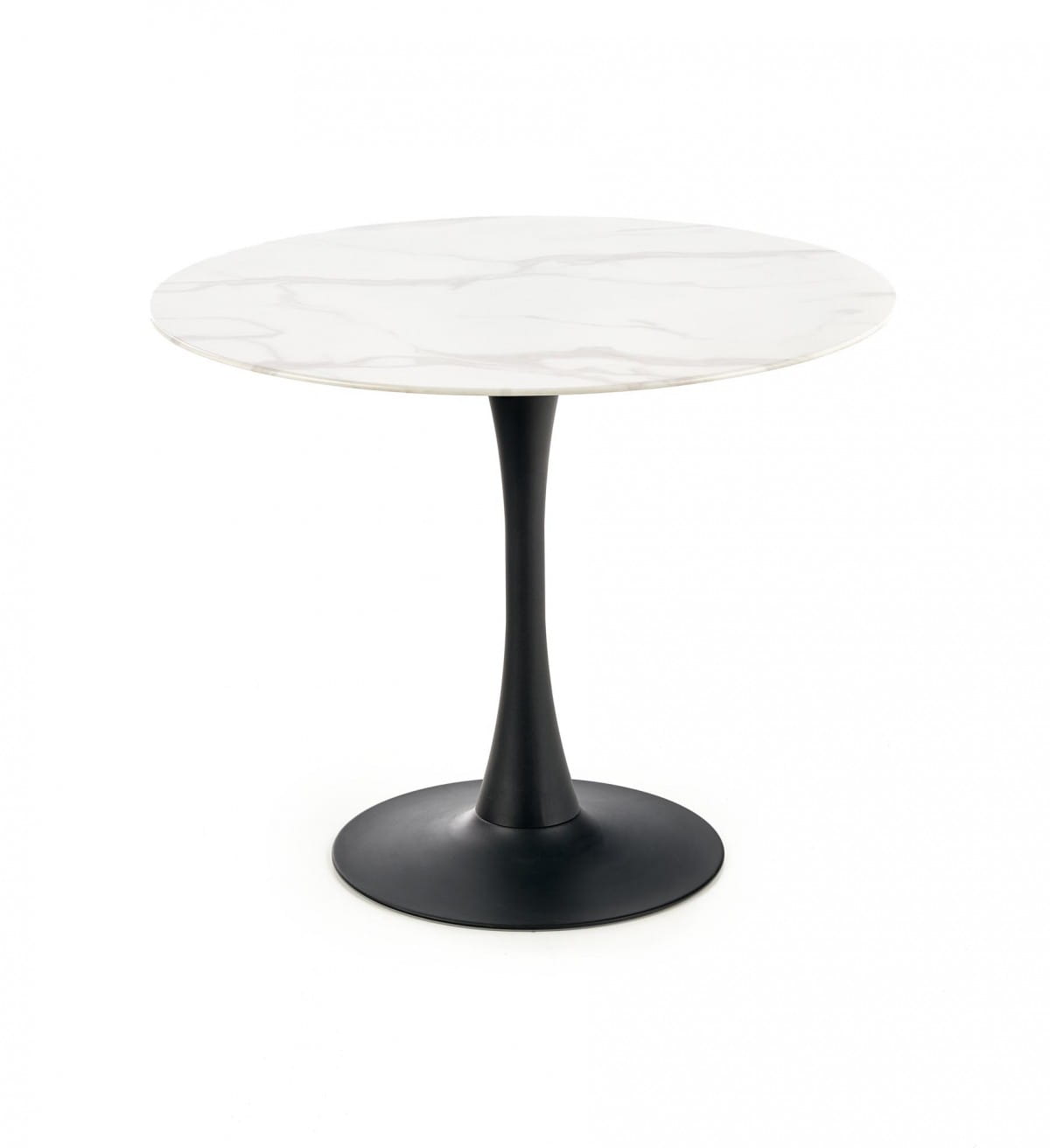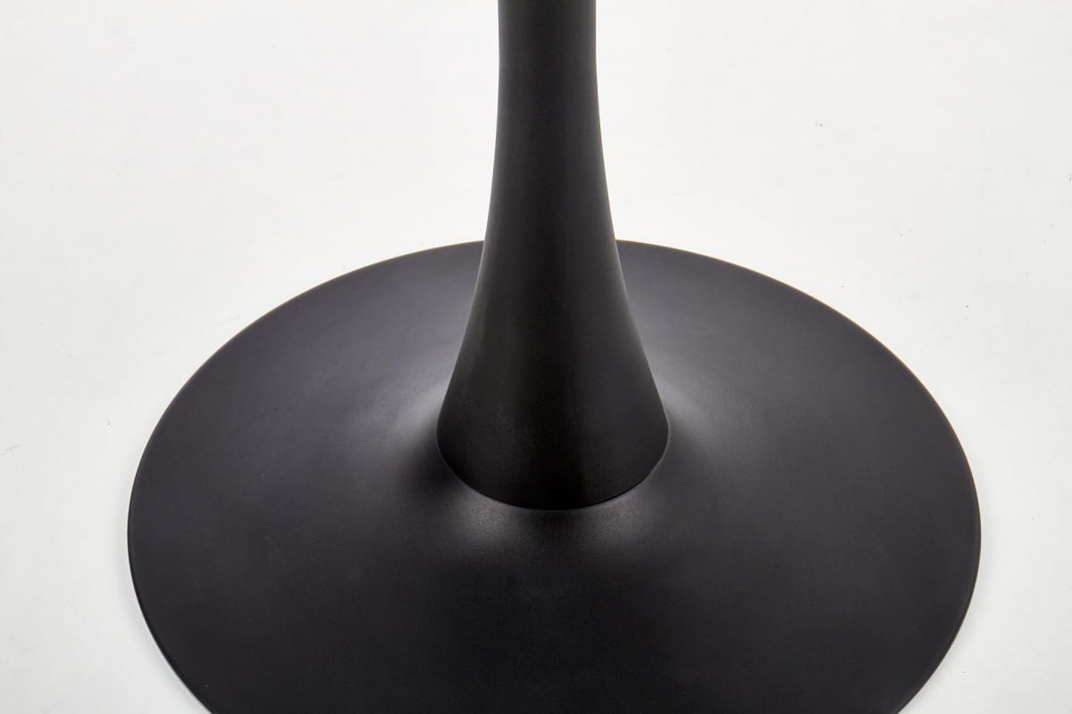 Wykonany z wysokiej jakości materiałów, blat stołu wykonano z trwałego i pięknego szkła, które doskonale komponuje się z eleganckimi, czarnymi nogami z malowanej proszkowo stali. Szlachetne połączenie czarnego koloru i białego marmuru nadaje temu meblowi wyjątkowego charakteru i sprawia, że stanowi on wyjątkową ozdobę każdego wnętrza.