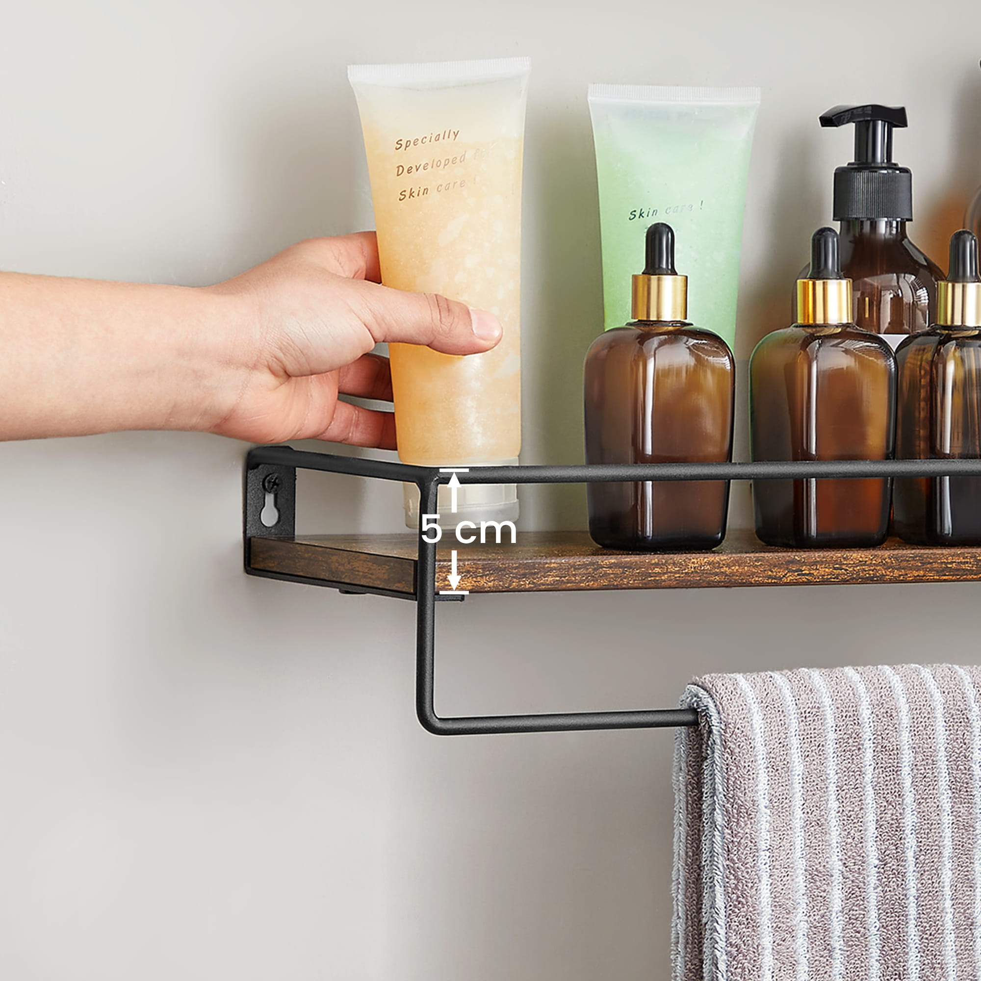 - Wymiary półki bez uchwytu na ręcznik: 40 x 15,5 x 5 cm (szerokość x głębokość x wysokość)