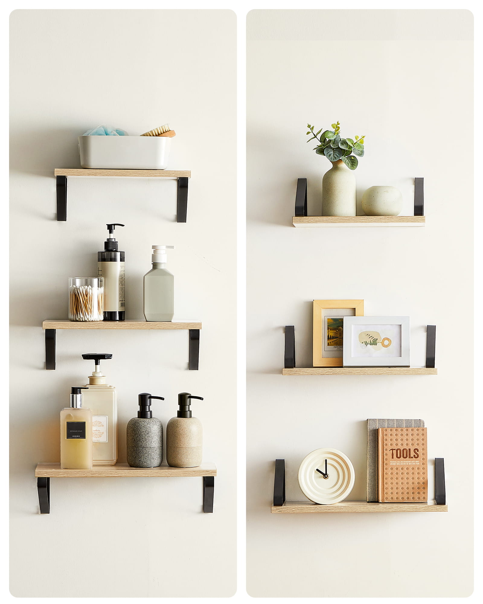 Półki można zamontować na 2 sposoby pokazane na zdjęciu tworząc przepiękną wystawę naszych przedmiotów.
