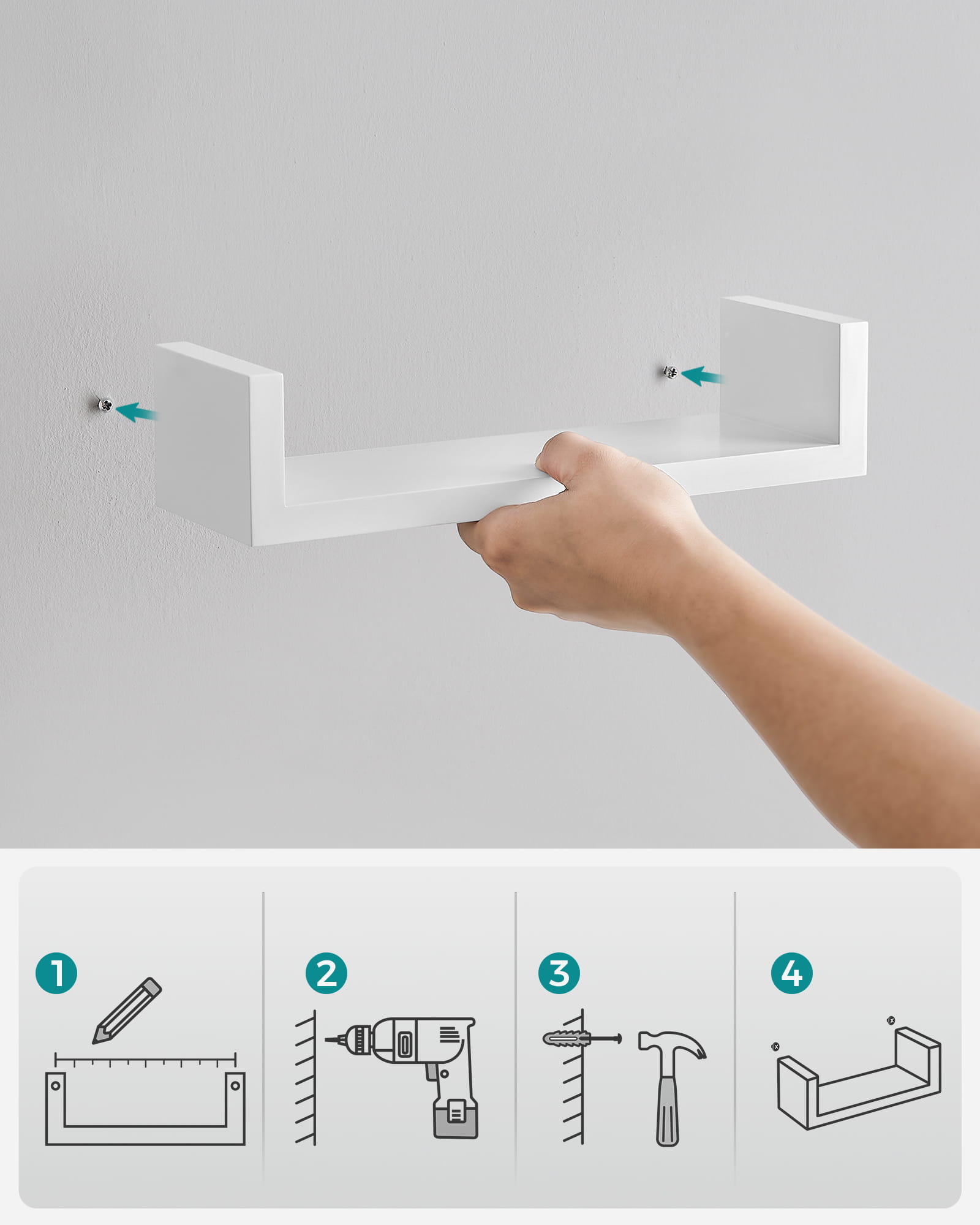 - Wymiary małej półki: 30 x 10 x 7 cm (szerokość x głębokość x wysokość)