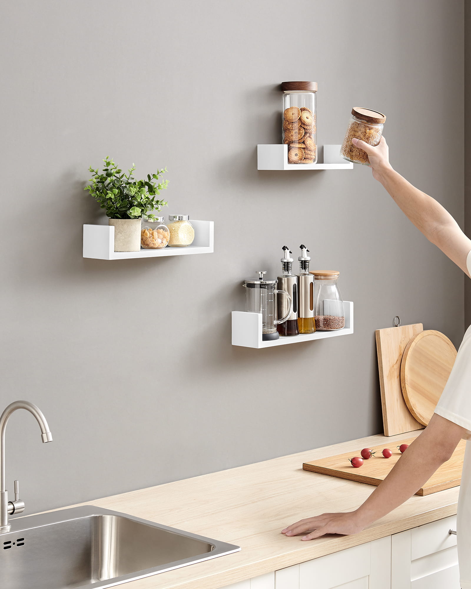 ZESTAW 3 PÓŁEK ŚCIENNYCH, WISZĄCYCH, BIAŁE