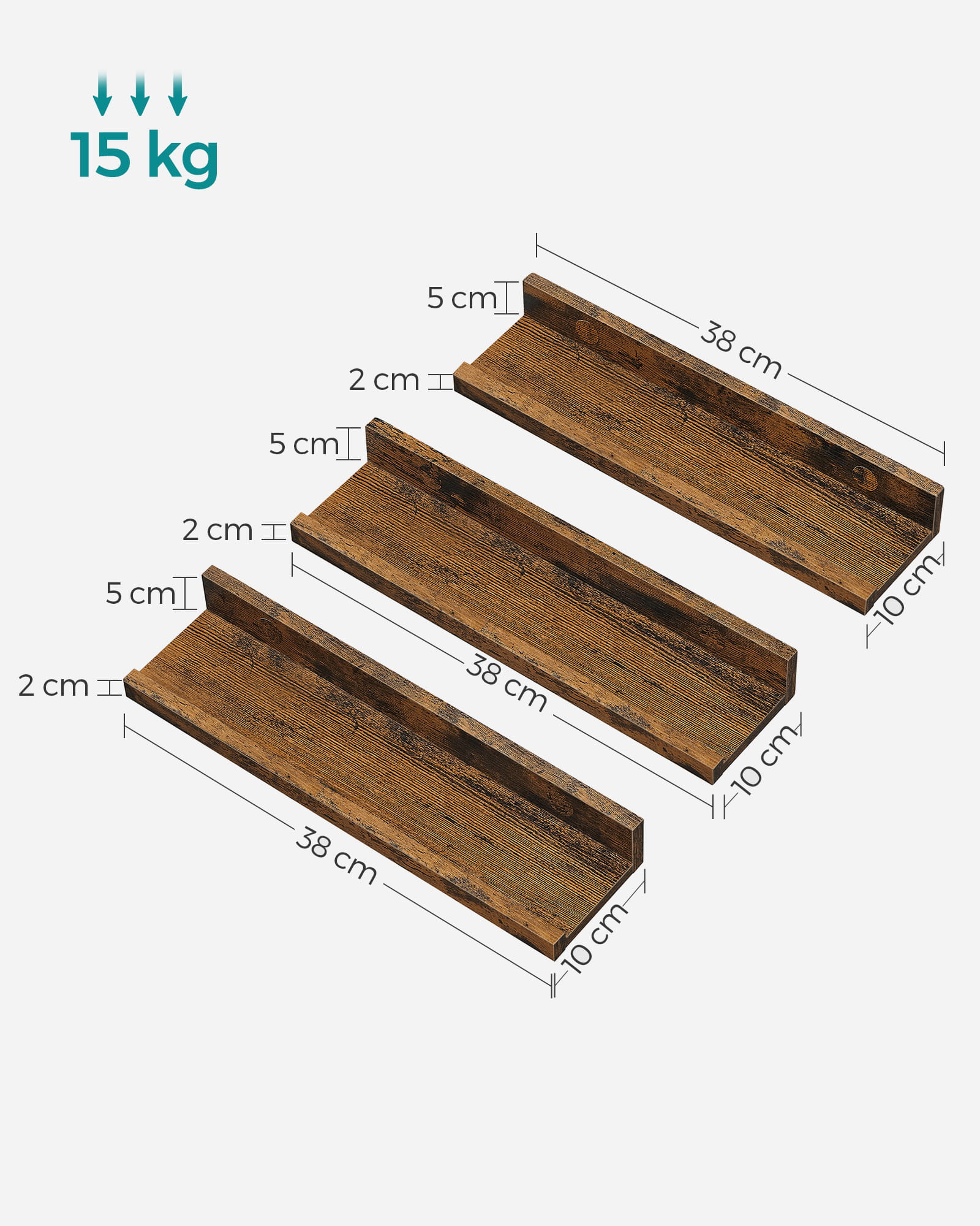 - Wymiary półek: 38 x 10 x 5 cm (szerokość x głębokość x wysokość)