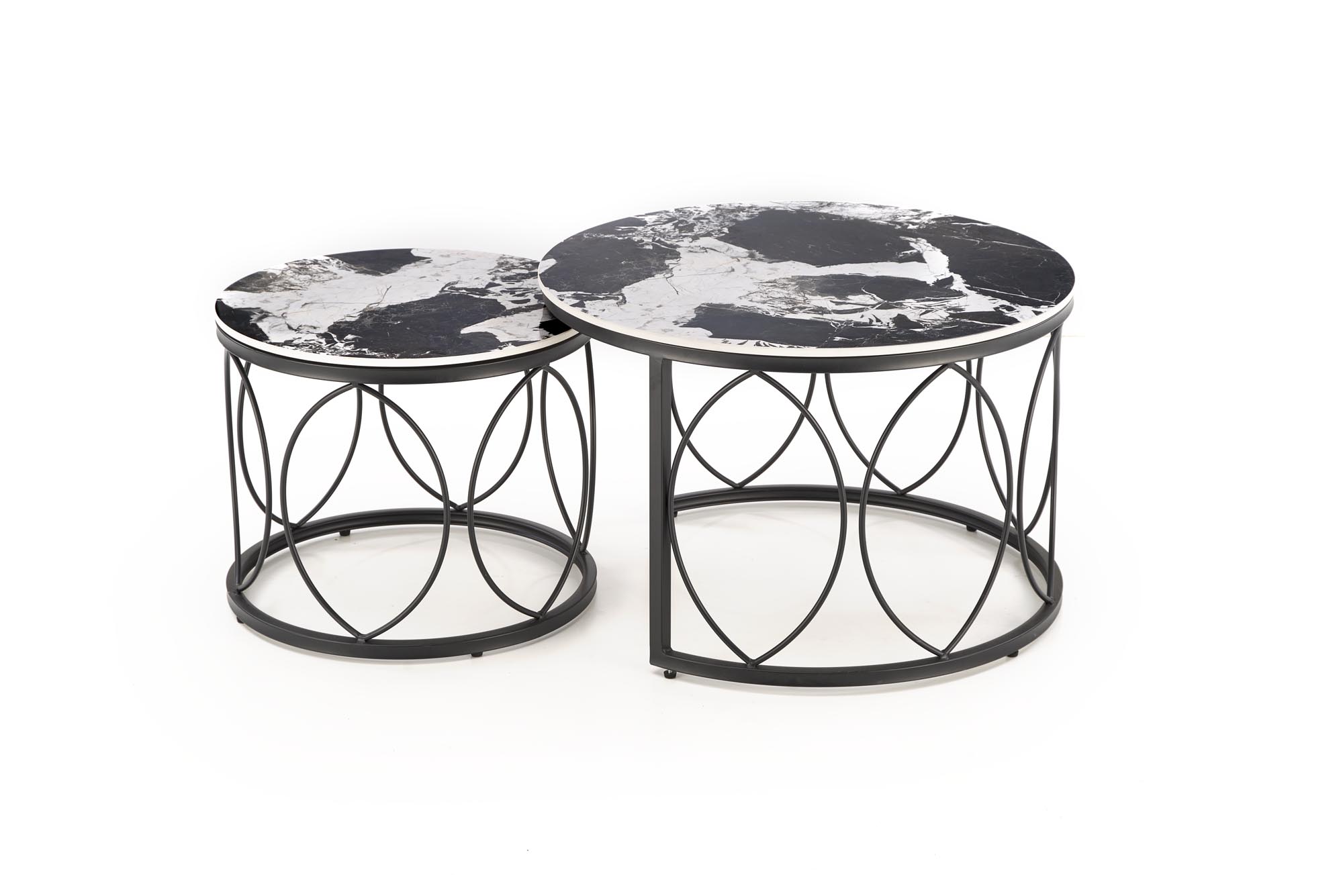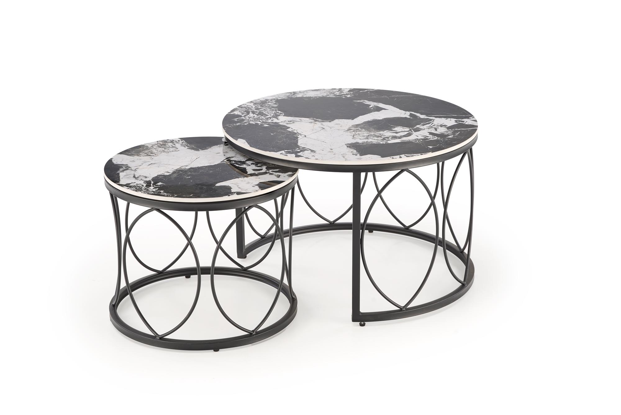 Zestaw ław 2szt. ALEXANDRA Okrągłe Czarny marmur Czarny fi.70cm i fi.50cm