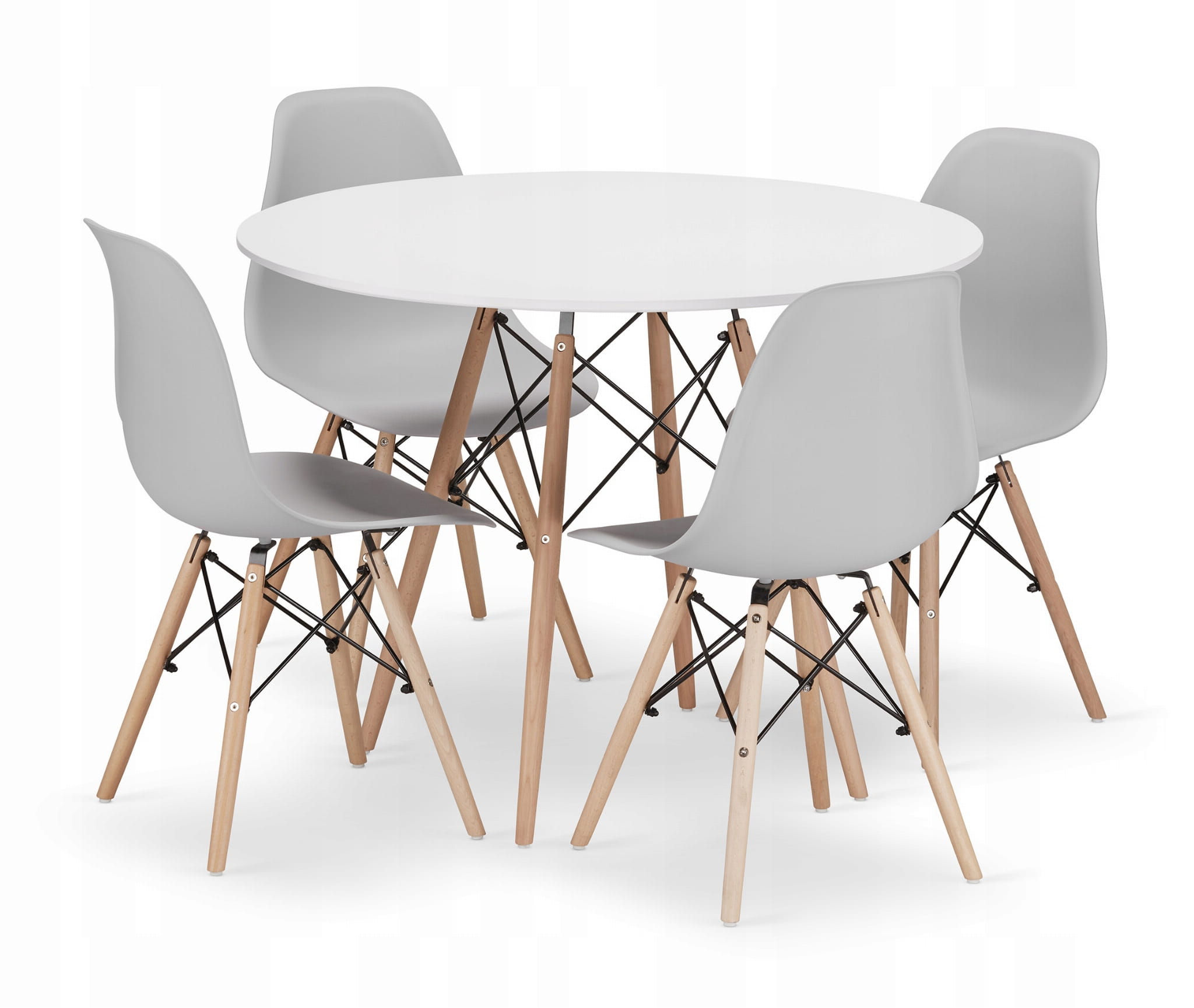 Zestaw stół okrągły TODI 100 biały + 4 krzesła OSAKA szare: