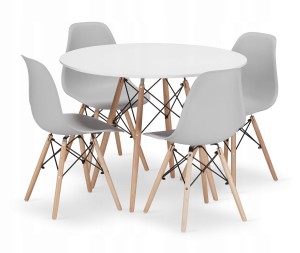 Zestaw stół z krzesłami: stół okrągły TODI 100 biały + 4 krzesła OSAKA szare