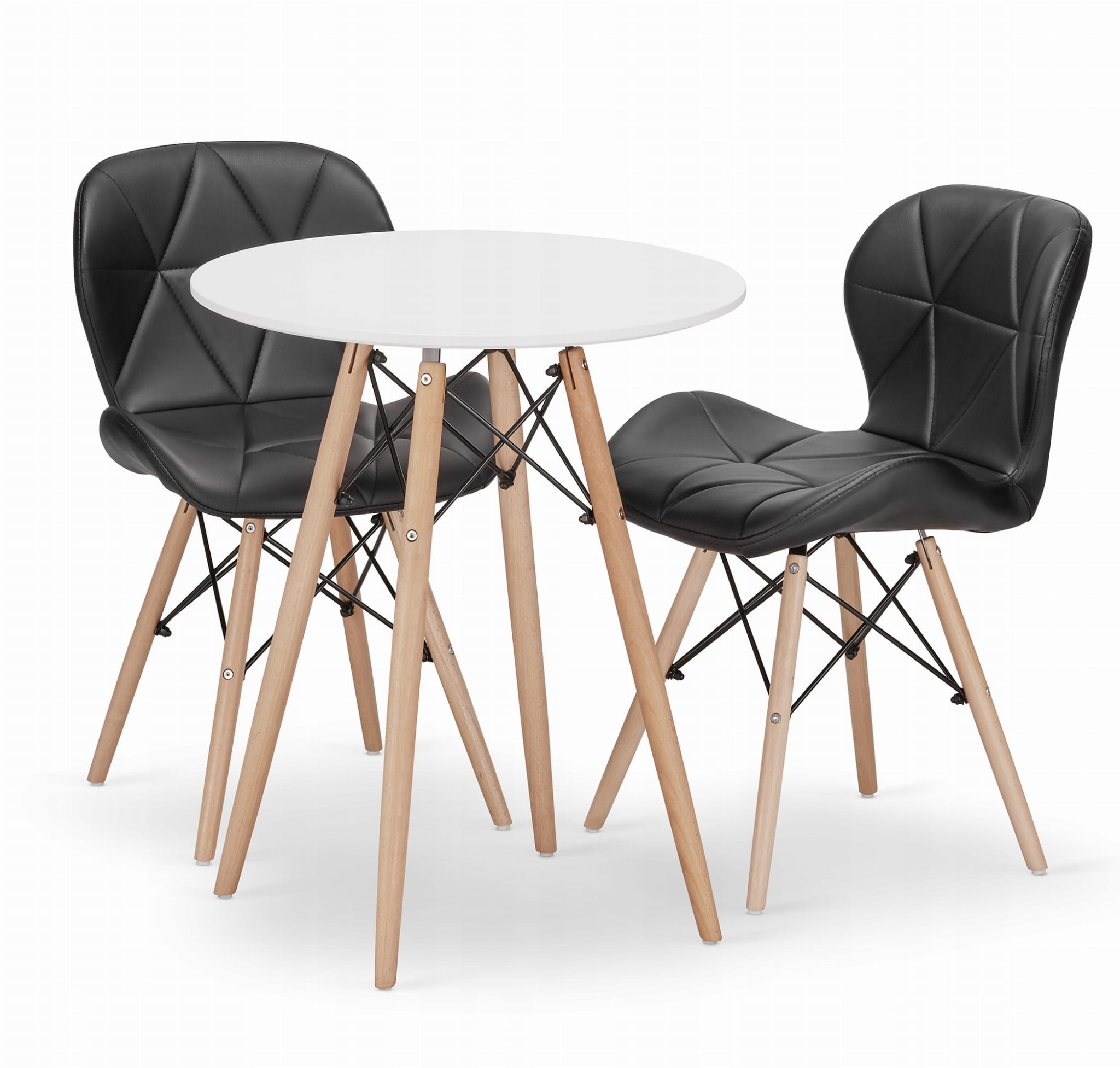 Zestaw stół okrągły TODI 60 biały + 2 krzesła LAGO czarne: