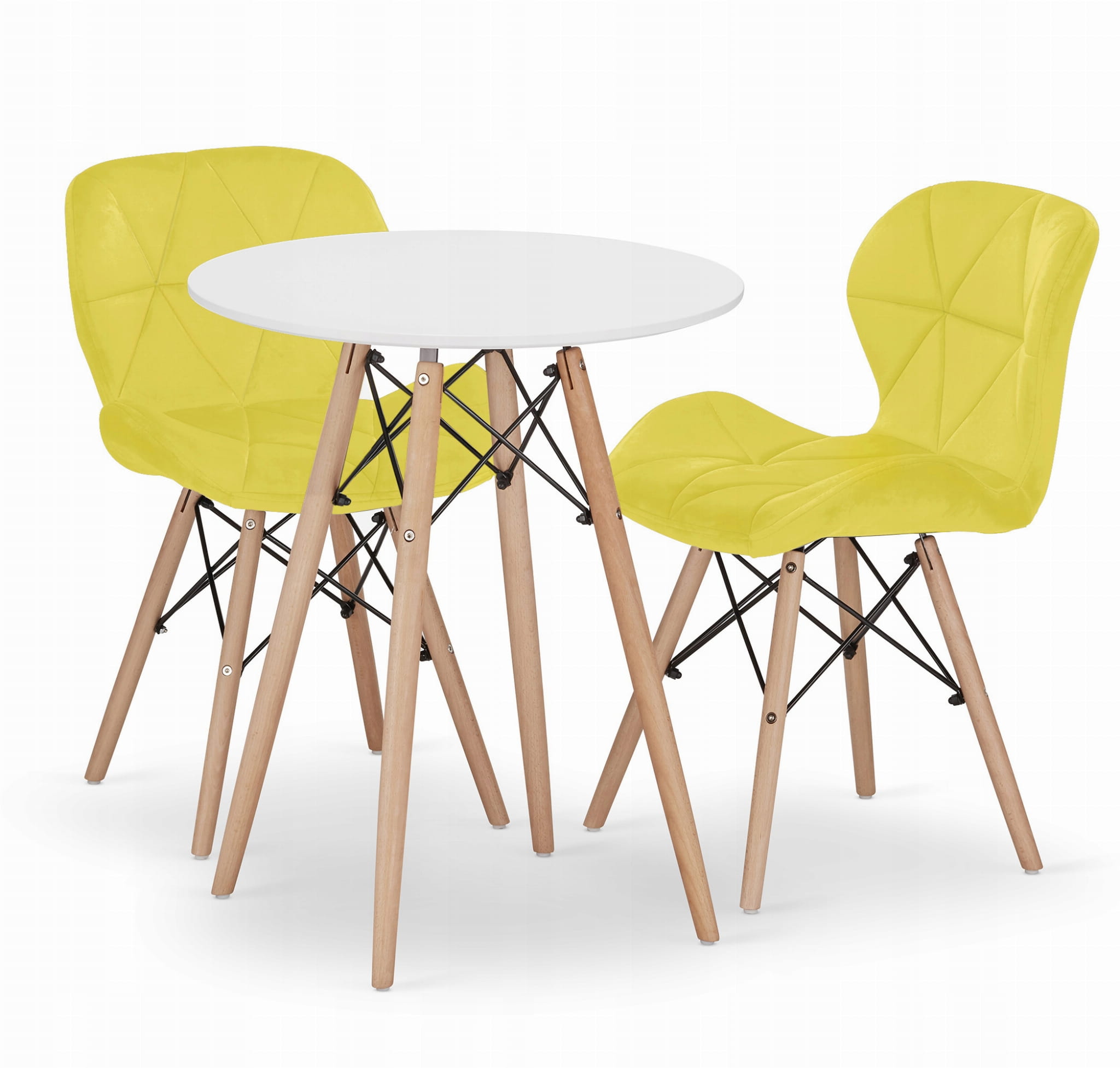 Zestaw stół okrągły TODI 60 biały + 2 krzesła LAGO żółte: