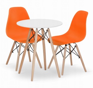 Zestaw stół z krzesłami: stół okrągły TODI 60 biały + 2 krzesła OSAKA pomarańczowe