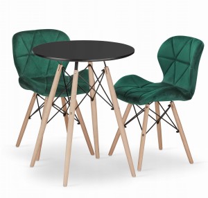 Zestaw stół okrągły TODI 60 czarny + 2 krzesła LAGO zielone: