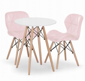 Zestaw stół okrągły TODI 60cm biały + 2 krzesła LAGO różowe:
