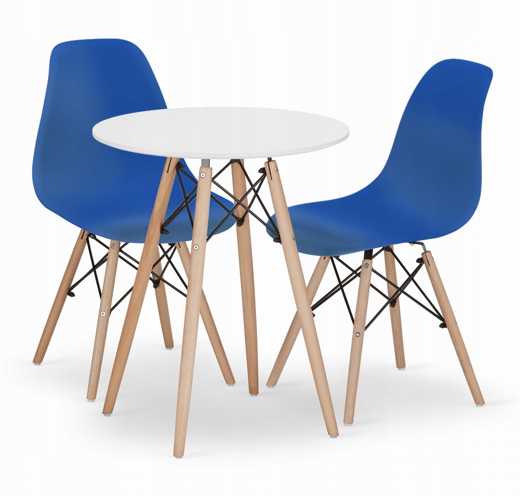Zestaw stół okrągły TODI 60cm biały + 2 krzesła OSAKA niebieskie: