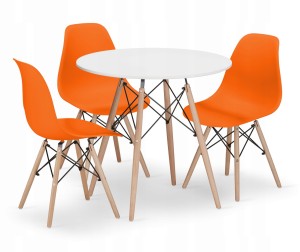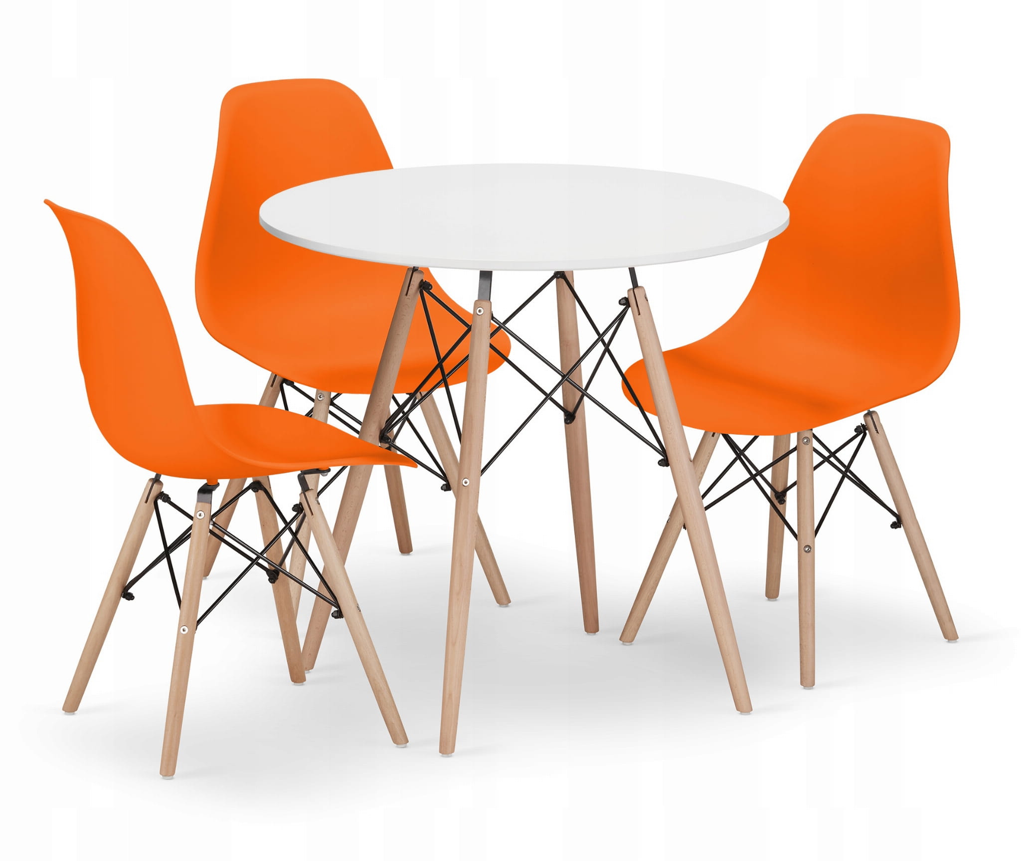 Zestaw stół z krzesłami: stół okrągły TODI 80 biały + 3 krzesła OSAKA pomarańczowe