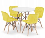 Zestaw stół okrągły TODI 80 biały + 4 krzesła LAGO żółte:
