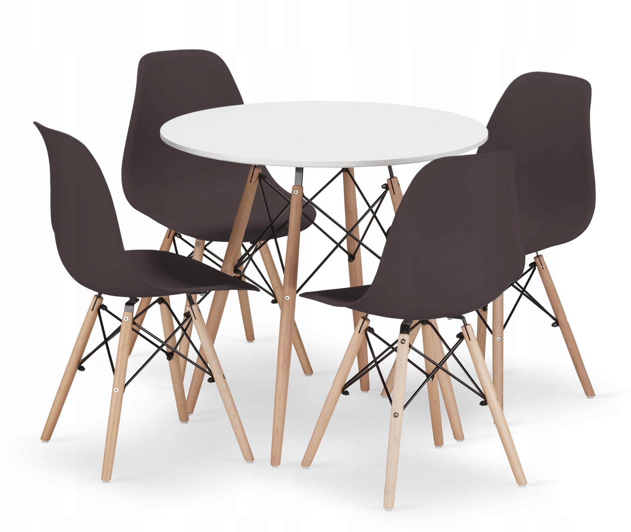 Zestaw stół okrągły TODI 80 biały + 4 krzesła OSAKA kawowe: