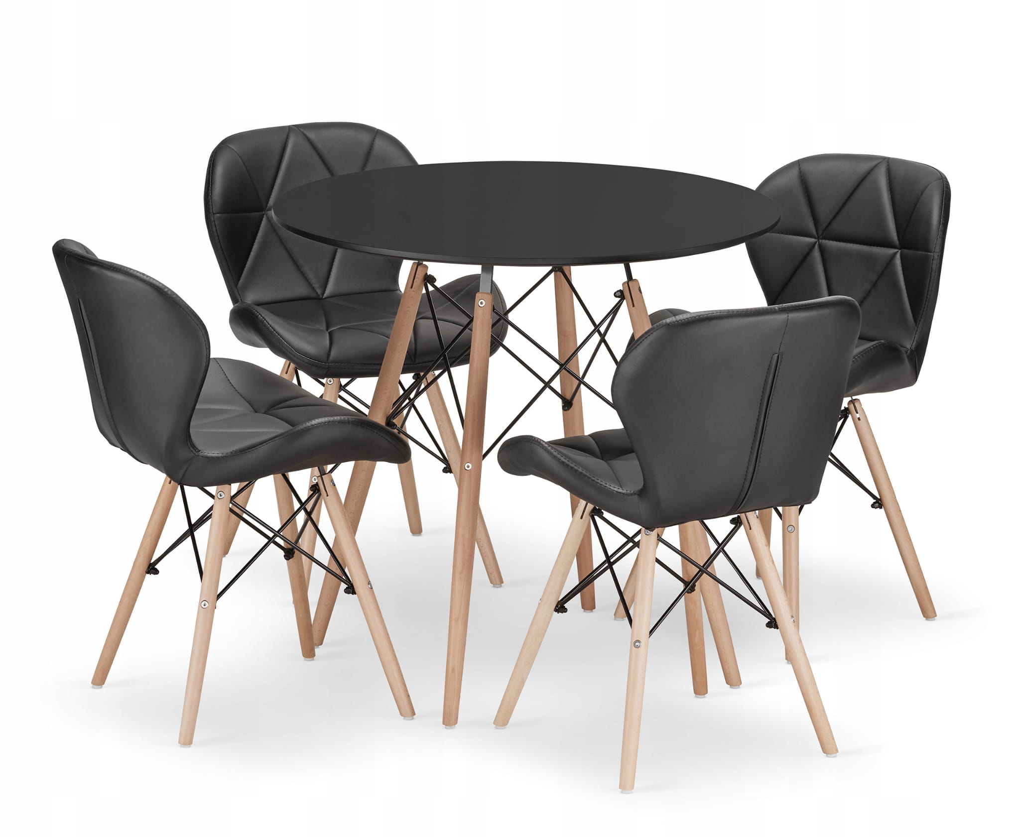 Zestaw stół z krzesłami: stół okrągły TODI 80 czarny + 4 krzesła LAGO czarne
