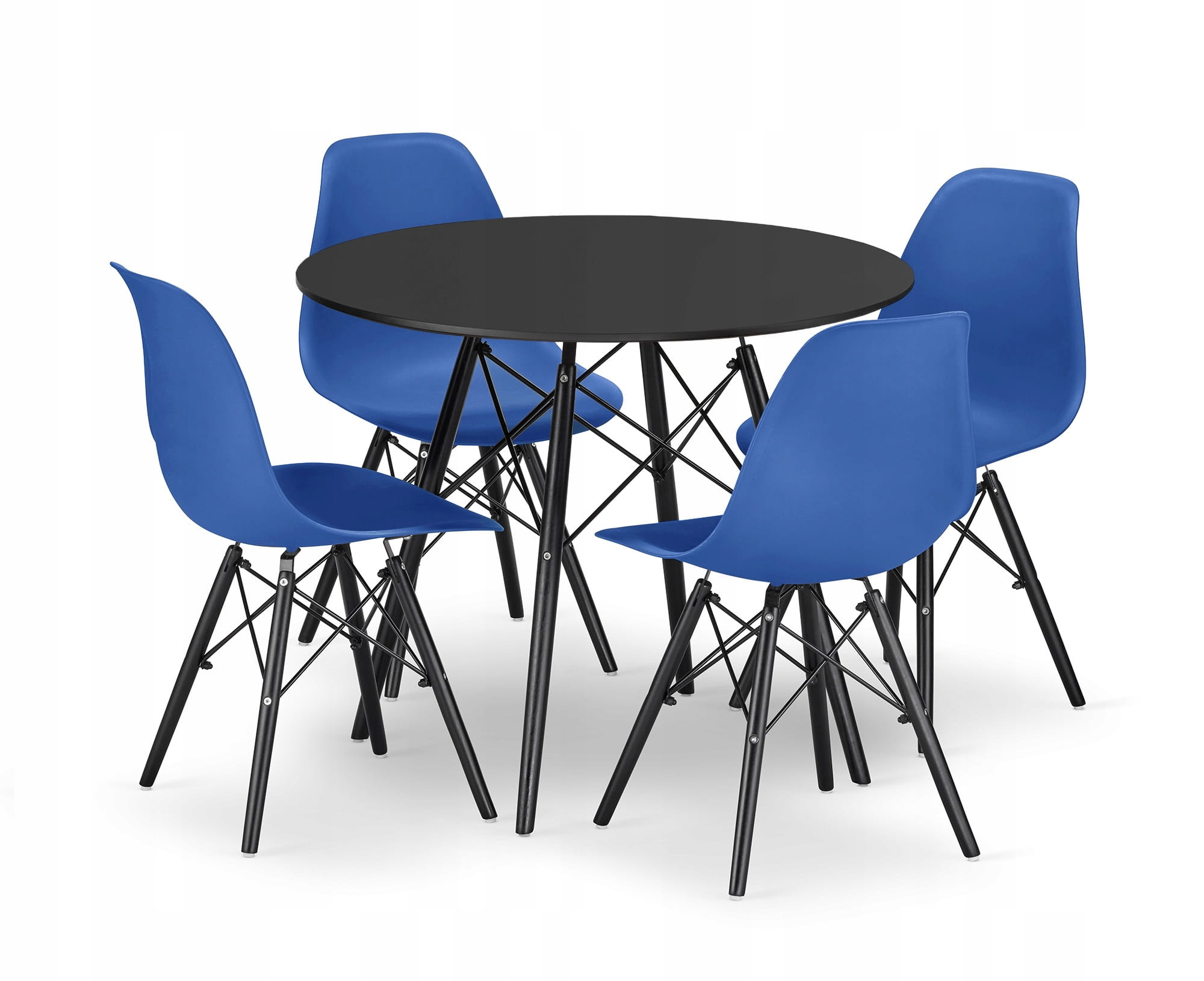 Zestaw stół z krzesłami: stół okrągły TODI 80 czarny + 4 krzesła OSAKA niebieskie