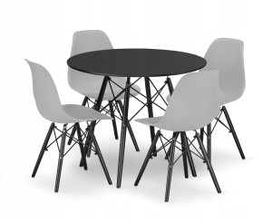 Zestaw stół z krzesłami: stół okrągły TODI 80 czarny + 4 krzesła OSAKA szare