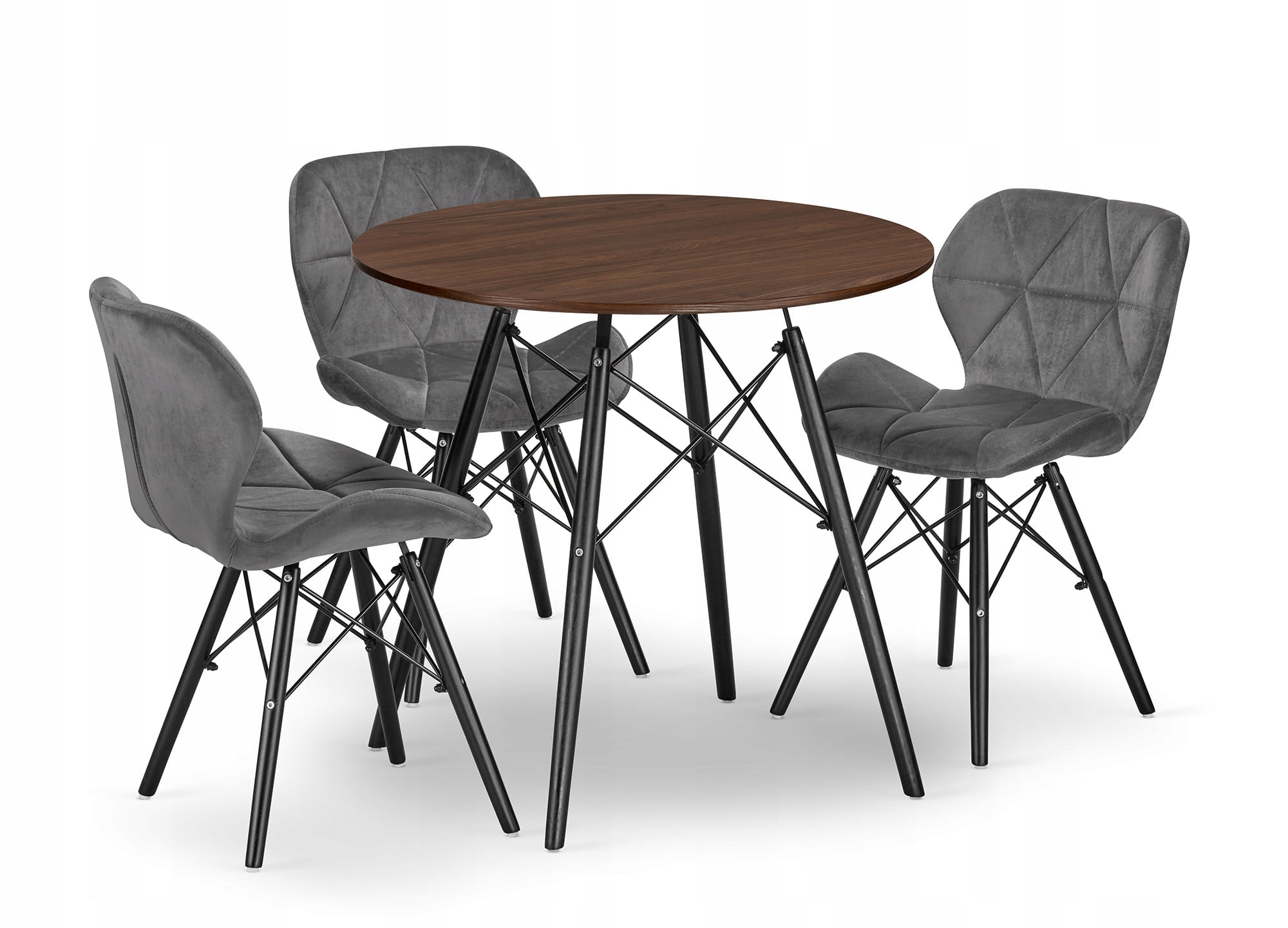 Zestaw stół okrągły TODI 80 jesion + 3 krzesła LAGO szare: