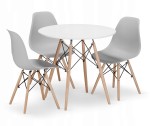 Zestaw stół z krzesłami: stół okrągły TODI 80cm biały + 3 krzesła OSAKA szare