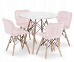 Zestaw stół okrągły TODI 80cm biały + 4 krzesła LAGO różowe: